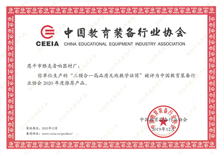 三模合一高品质无线教学话筒入选中国教育装备行业协会2020年度推荐产品,并获颁证书!